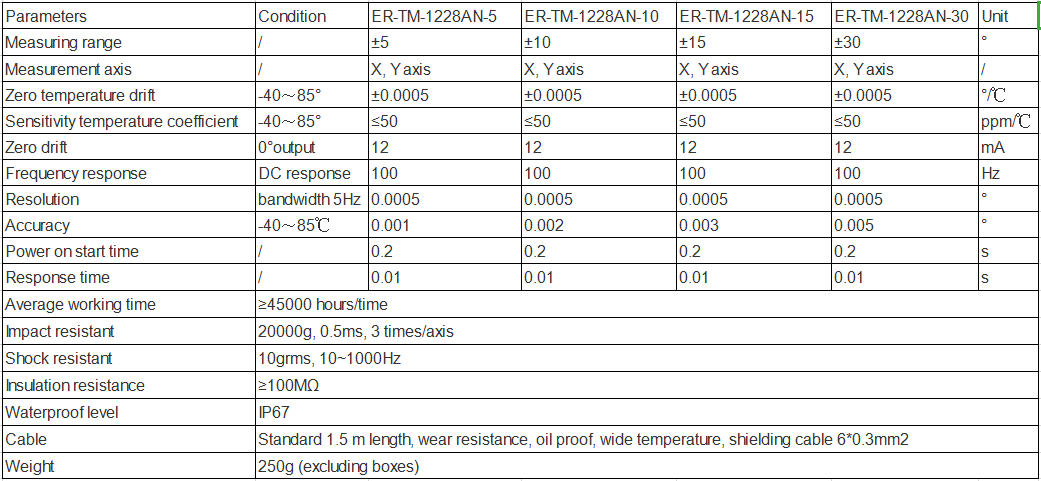 Using MEMS sensor production technology, it can accurately compensate and correct temperature errors and linear errors. It has the characteristics of high precision, small size, high packaging technology and strong vibration resistance. Due to the built-in anti-radio frequency and anti-electromagnetic interference circuit, it is especially suitable for applications in harsh industrial environments such as underground non-excavation machinery.