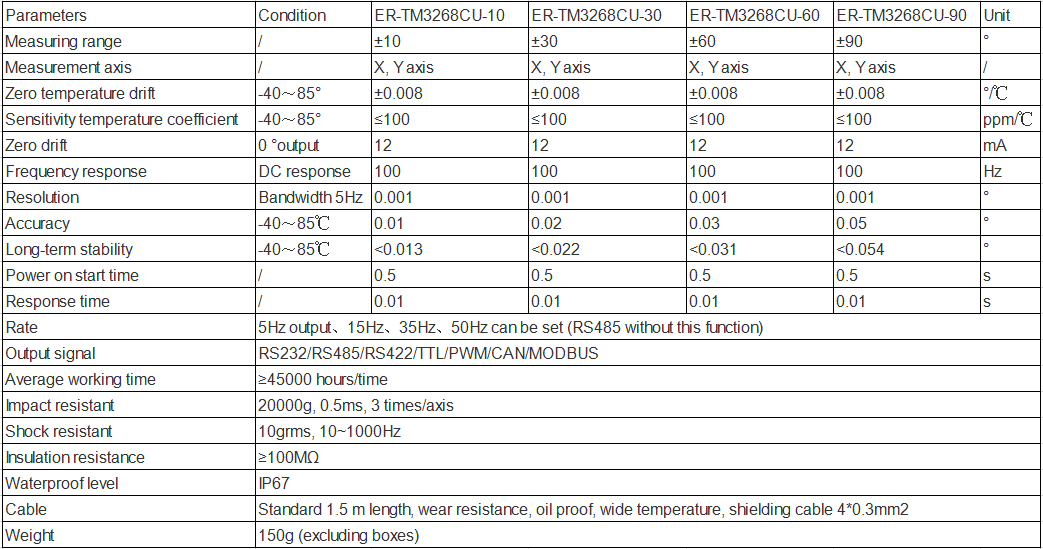 The product adopts MEMS sensor production technology, which can accurately compensate and correct temperature errors and linear errors. It has the characteristics of high accuracy, small size, high packaging technology, strong vibration resistance, built-in anti-radio frequency and anti-electromagnetic interference circuits, which is especially suitable for underground applications in harsh industrial environments such as excavation machinery.