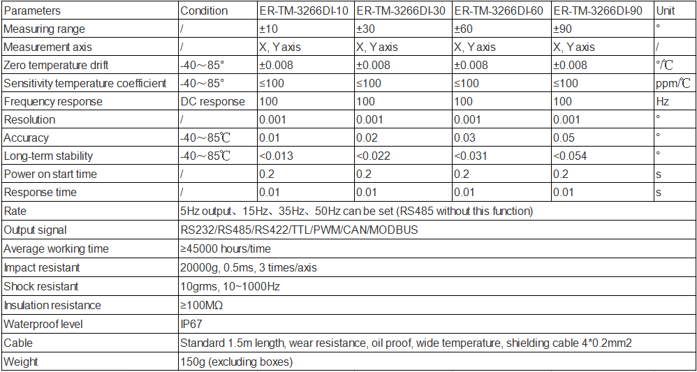 AND-TS-3266DI is a serial dual-axis inclinometer designed specifically for industrial control using MEMS technology and digital output. Built-in high-precision16bit A/Ddifferential converter, through N filtering algorithm, which can measure the angle of sensor output relative to the horizon taltilt and pitch tilt. The output interfaces RS485, RS232, RS422, TTL, CAN, MODBUS are optional.