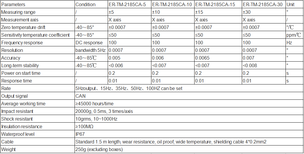 It is a high-precision CANopen single-axis inclination sensor for industrial field control. It adopts industry standard isolator CAN transceiver with resolution of 0.0008°, accuracy of 0.005°, and temperature drift of 0.0005°/℃, which is a real industrial-grade product.