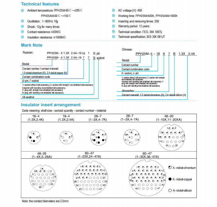 PPH25M and PPH25AM Temperature Compensation Electrical Connectors are
