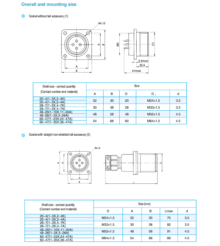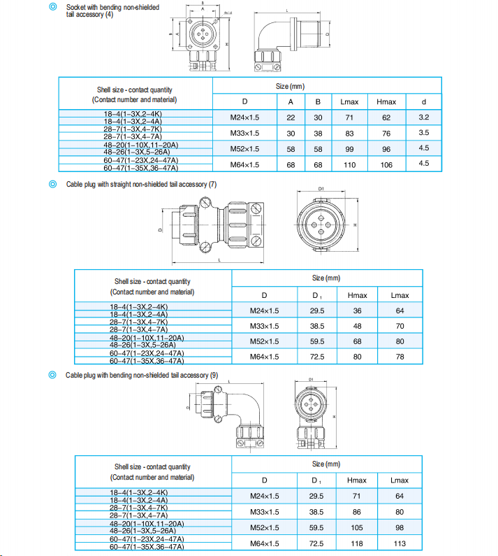 The plug (connecting to cable) is equipped with straight or bending non-shielded